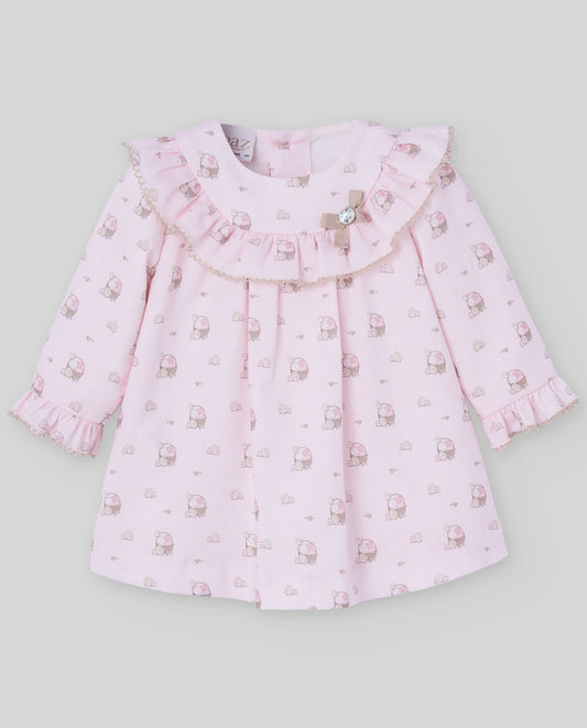 VESTIDO BORDADO CON NIDO DE ABEJA Y BRAGA